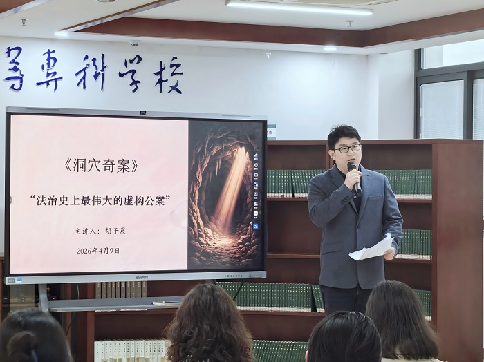 主讲教师胡子晨以《洞穴之内,法律之外——共读〈洞穴奇案〉》为题,围绕《洞穴奇案》一书开展了专题讲座。他首先追溯了洞穴奇案的真实原型,对霍尔姆斯案、杜德利案的案情进行了详细剖析,解读了“紧急避险”这一核心法律抗辩理由的适用范围,为理解虚构案件奠定了现实基础。随后,胡老师对富勒教授所虚构的洞穴奇案核心情节进行了完整还原,并对五位法官的裁判逻辑逐一进行剖析,拆解分析实证主义法学派、自然法学派等主流法学流派的核心思想,深入探讨“多数人利益能否牺牲少数人生命”“洞穴是否为法外之地”“极端情境下杀人是否构成紧急避险”这三大核心争议。最终,他结合校园生活、职场抉择等现实场景,阐述了本书的现实意义,引导师生构建理性决策框架,排除个人偏好与情绪的干扰。具体而言,先明确抉择中不可更改的前提条件,再对例外情形进行研判,从而形成科学的决策思路。
